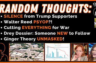 Silence from Trump Supporters, Walter Reed PsyOp, Cutting Everything for War, Drey Dossier: Someone New to Follow, Ginger Theory UNMASKED!, Updated…